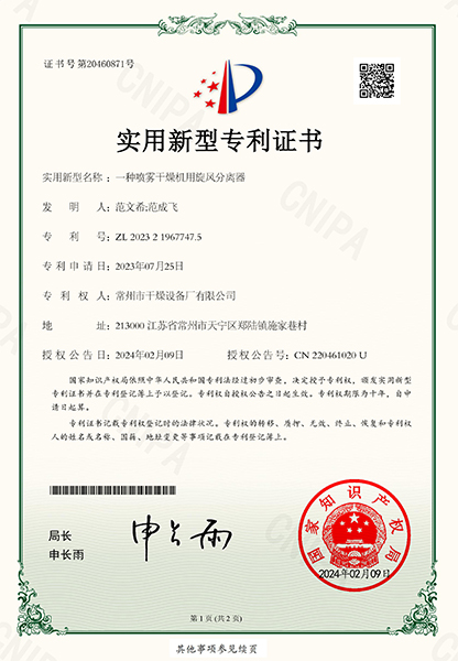 • 一种喷雾干燥机用旋风分离器